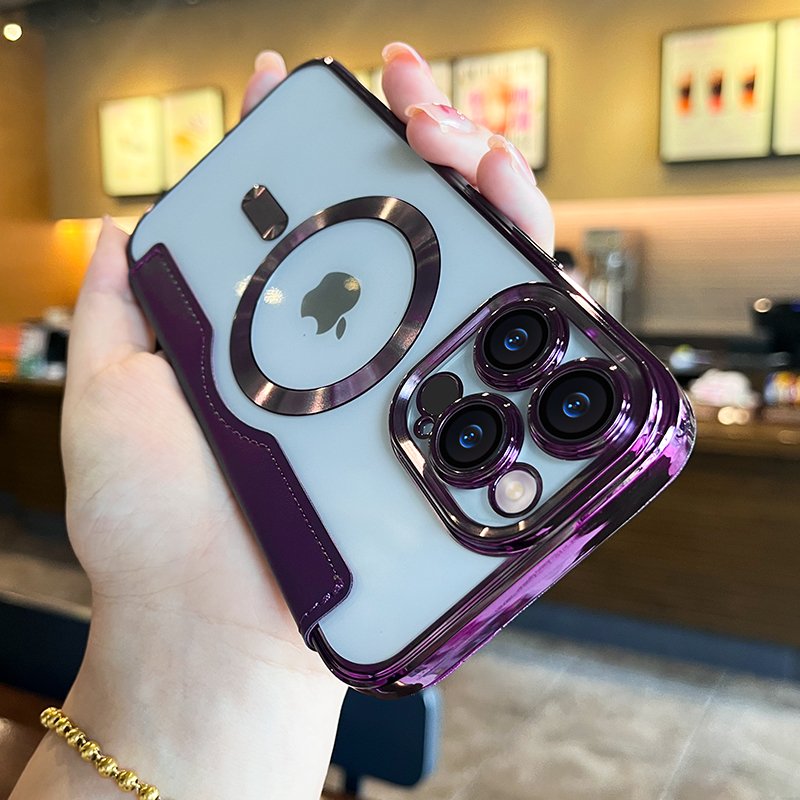 Offrez à votre iPhone une protection haut de gamme avec cet étui en cuir à rabat galvanisé de luxe. Conçu pour allier élégance, solidité et praticité, il protège efficacement votre téléphone tout en conservant la compatibilité avec la charge sans fil.